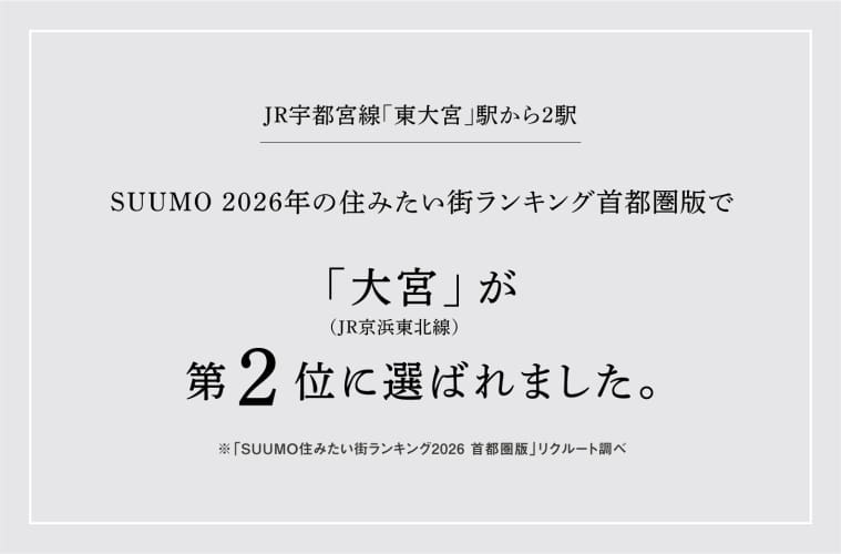 ![]() ビッグタウン「大宮」の近郊エリアで生活施設が徒歩圏にある暮らしやすいまち。「大宮」駅周辺も生活圏、楽しいお店が集まる「駅ナカ」をはじめ、大型商業施設や専門店・グルメ、文化施設もある魅力的なまちです。 |