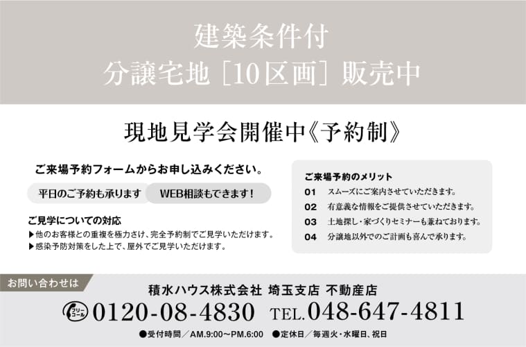 積水ハウス株式会社  埼玉支店定休日:火曜日、水曜日及び祝日 営業時間:9:00~18:00