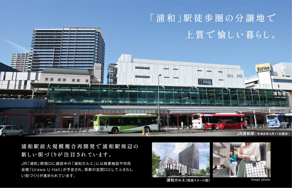 - 駅周辺の再開発が進行中の浦和区は、大型商業施設、教育施設、公園、公共・文化施設などが整った街。また、県内有数の名門校があり子供の未来を育む充実の教育環境を誇ります。