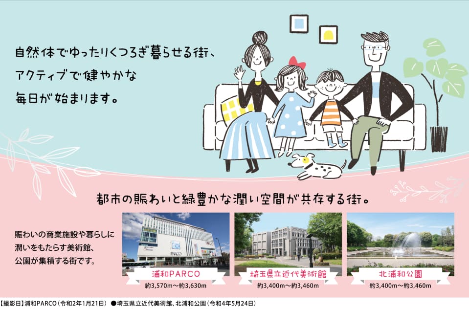 - 大型商業施設や文化施設が集積するJR「北浦和」「浦和」駅周辺が生活圏なので、利便性の高い暮らしを享受できます。