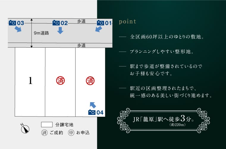 区画図|全区画60坪以上のゆとりの敷地で、プランニングしやすい整形地。