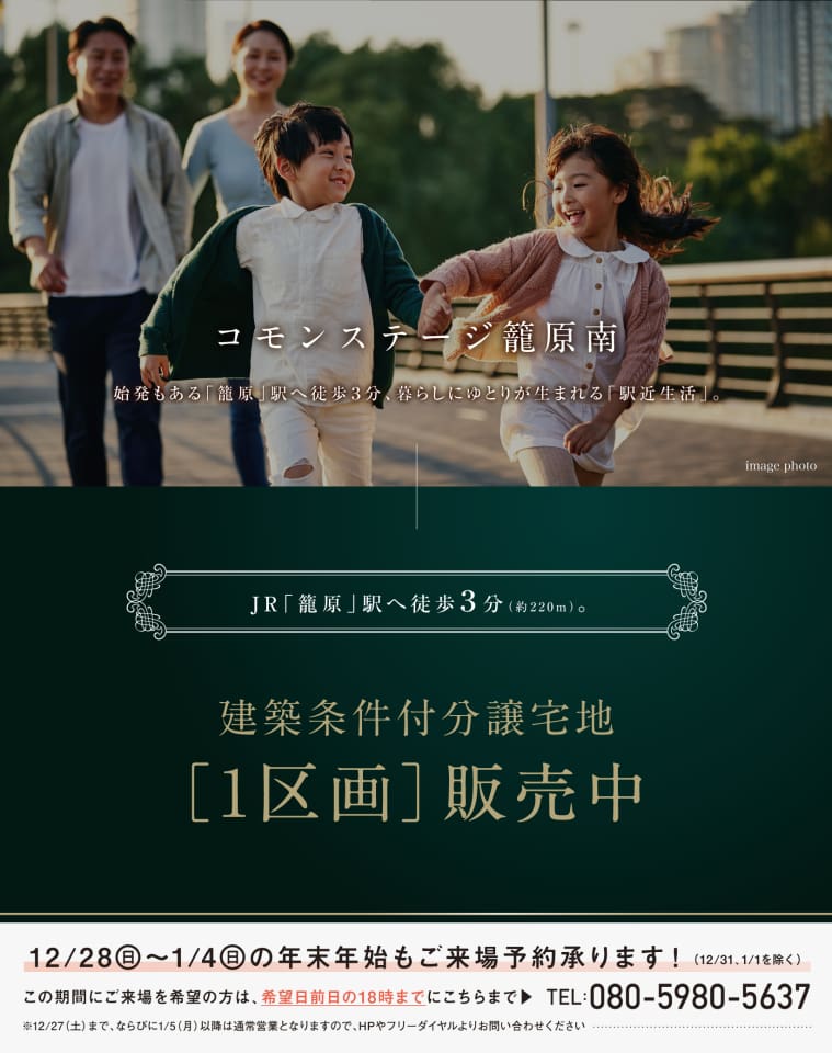 朝の時間にゆとりが生まれる駅徒歩3分の好立地。忙しい朝や遅い帰宅時にも安心です。このまちで家族らしく心地よいくらし始めませんか。●JR籠原駅(徒歩3分/約220m)