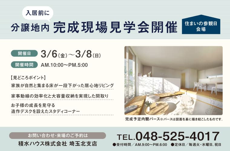 積水ハウス株式会社 埼玉北支店 不動産店定休日:火曜・水曜・祝日 営業時間:9:00~18:00