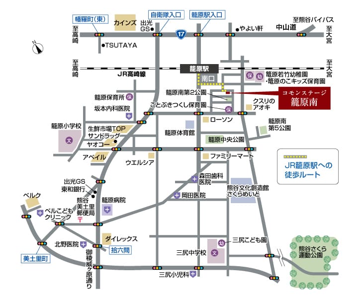 幹線道路の17号線や関越道「花園IC」へのアクセスが良く車での移動もスムーズです。