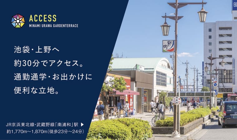 「南浦和」駅と「蕨」駅の2駅が利用できます。上野・東京へは乗り換えなしでアクセスできるので、通勤・通学もスムーズ。