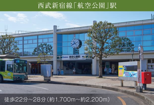 最寄り駅の「航空公園」駅は、急行と準急の停車駅。駅の前にはバスロータリーもあります。