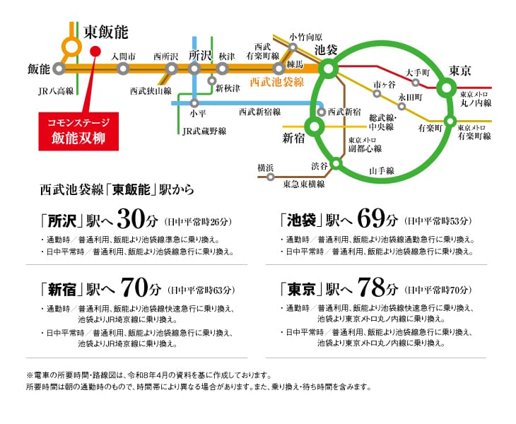 「東飯能」駅へ徒歩15分、1駅目の「飯能」駅(約1,740m)は始発駅で、都心へのアクセスにも便利な立地。