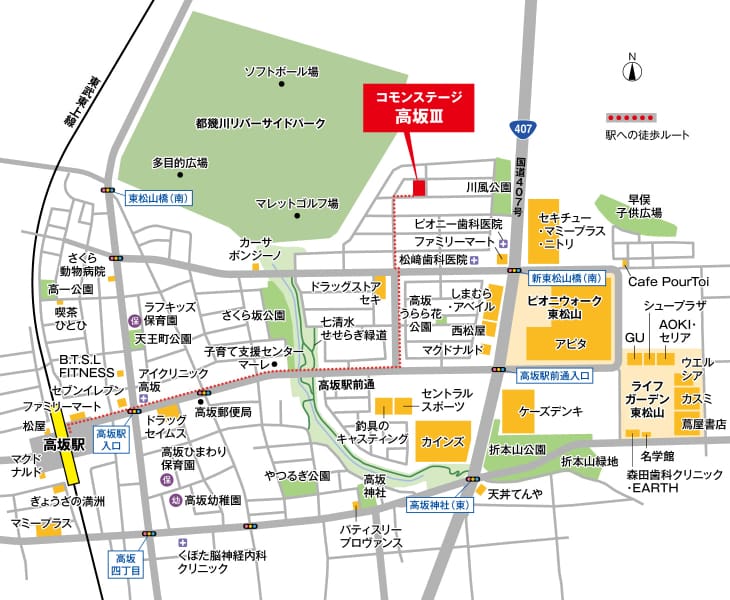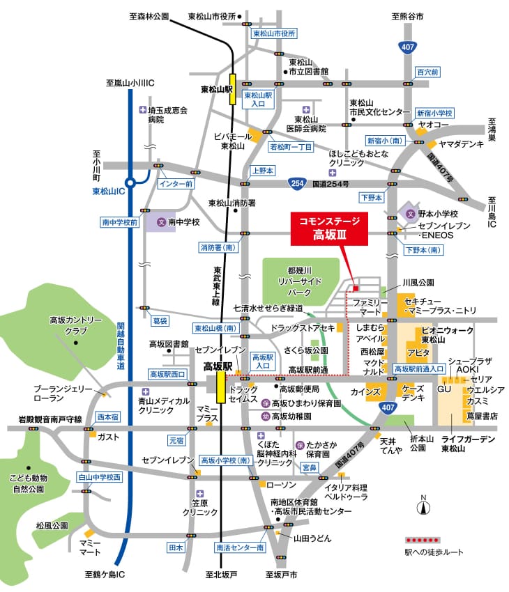 市内を走る国道へアクセスしやすく交通アクセスに恵まれた立地。東松山市街地も生活圏のエリアです。
