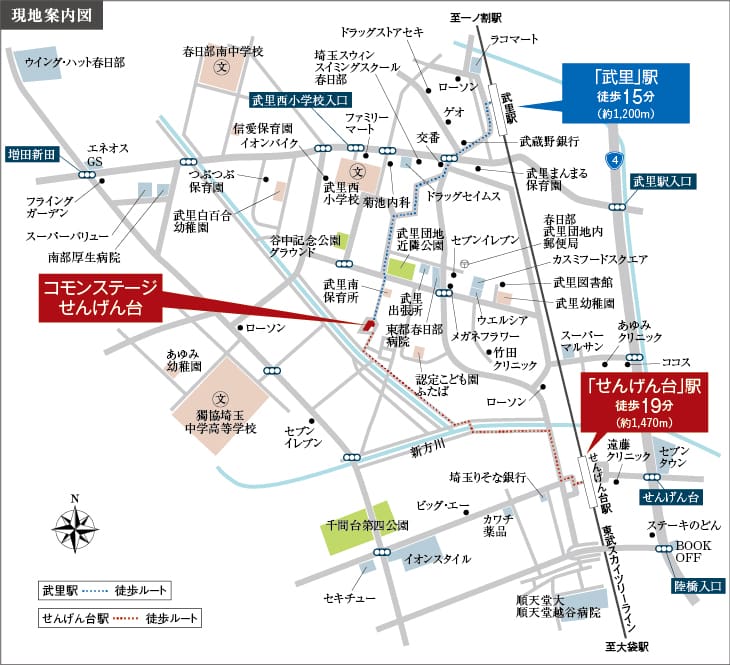 「せんげん台」駅と「武里」駅の2駅が徒歩圏。