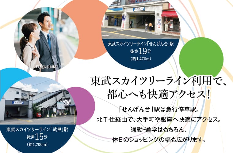 スカイツリーライン利用で都心への通勤通学、お出かけにも便利。