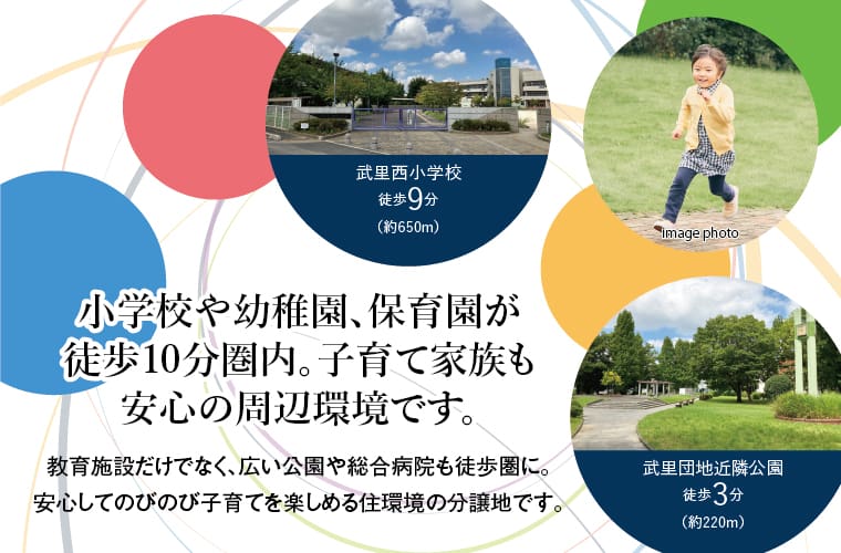 ![]() 教育施設や遊び場が近いと安心! 教育施設が近くうれしいのはもちろんですが、 いつもの遊び場が近いので、安心して遊ばせることができます。 |
