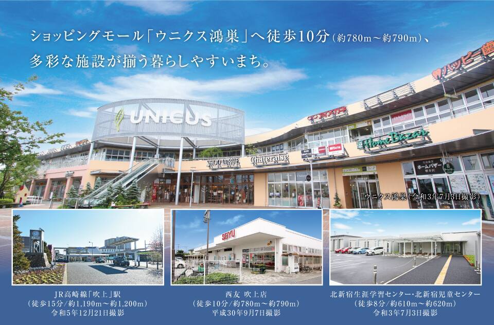 ショッピングモール「ウニクス鴻巣」へ徒歩10分、