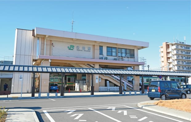 湘南新宿ライン、上野東京ラインが停車する高崎線の駅。行田市の南西端に位置する駅です。