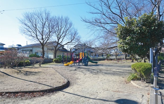 遊具やトイレなどの設備がある緑豊かな公園です。