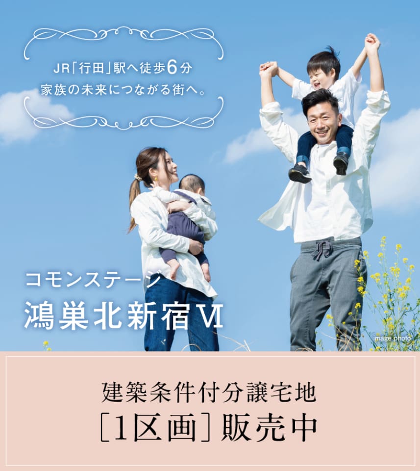 保育園、児童センター、公園やショッピングモールなどの生活利便施設が徒歩圏に整った快適なまちで暮らす「ゆとり生活」はじめませんか。●JR行田駅(徒歩6分/約460m)●なのはな保育園(徒歩6分/約440m)●北新宿生涯学習センター・北新宿児童センター(徒歩5分/約370m)●北新宿2号公園(徒歩2分/約150m)●ウニクス鴻巣(徒歩6分/約480m)
