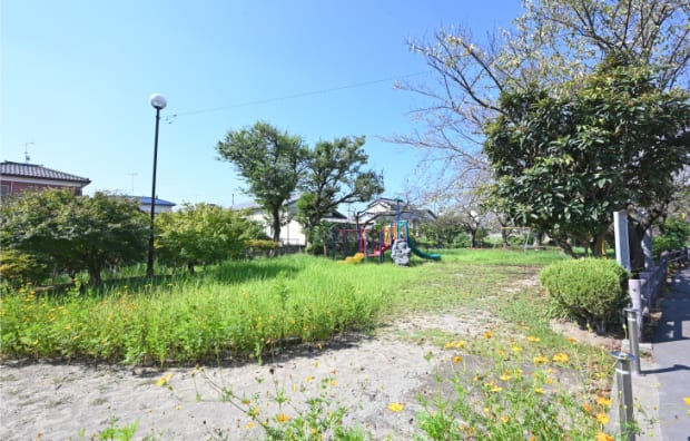 遊具やトイレなどの設備がある緑豊かな公園です。