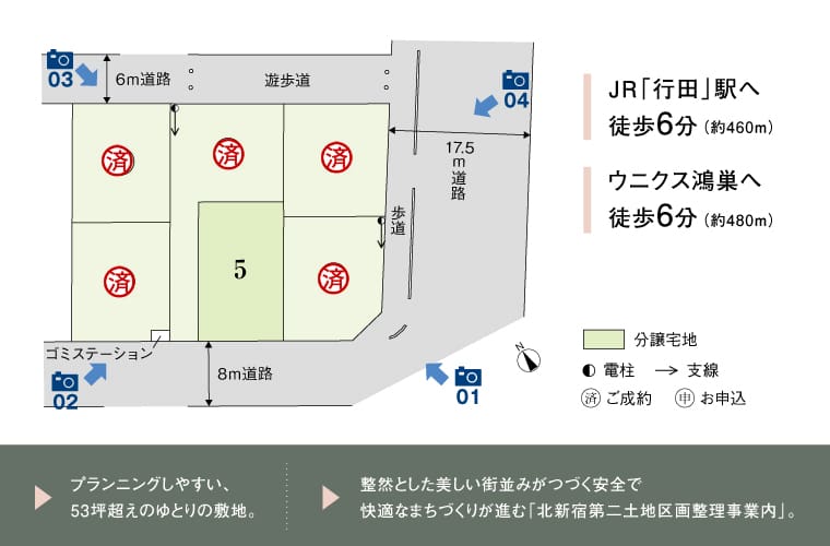 美しい街並みがつづく区画整理地内に全6区画の分譲地が誕生。子育てファミリーがのびのびと愉しく暮らせます。