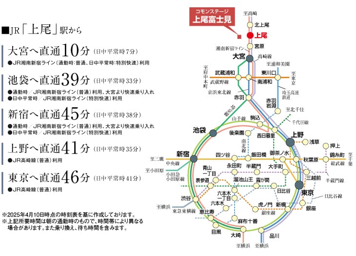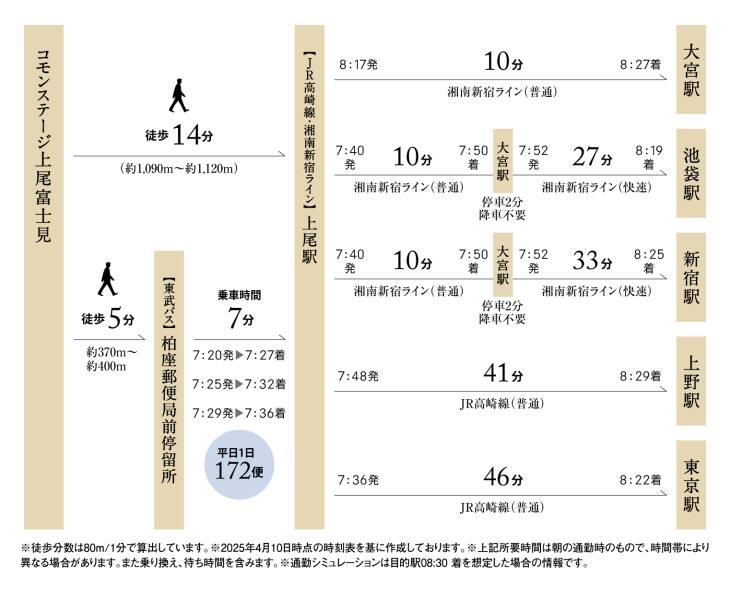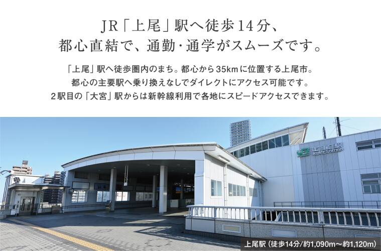 「上尾」駅へ徒歩圏内。「上尾」駅へ一日172本のバス便。