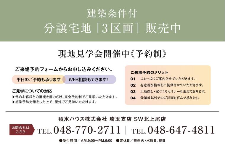 ★現地見学会開催中!ご予約制★時間:10時~18時(平日・土日祝どちらも可能です。)