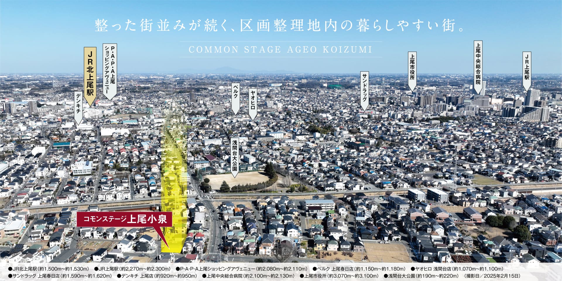 「北上尾」駅へ自転車で9分(約1,500~1,530m)。「上尾道路」や「国道17号線」の幹線道路で、車での移動もスムーズです。※自転車の所要時間は実走の場合です。