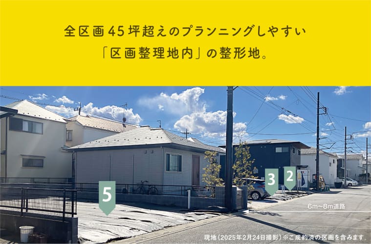 区画整理地内。45坪超えのプランニングしやすい整形地。