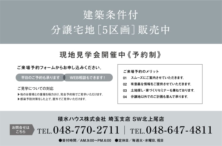 積水ハウス株式会社 埼玉支店定休日:火曜日、水曜日及び祝日 営業時間:9:00~18:00