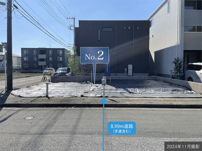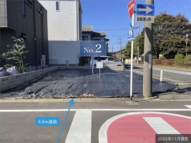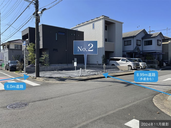 ![]() 分譲地現地(分譲地北側より) 区画の北側は8.99m幅員の歩道のある道路に面しています。(※2024年11月撮影) |