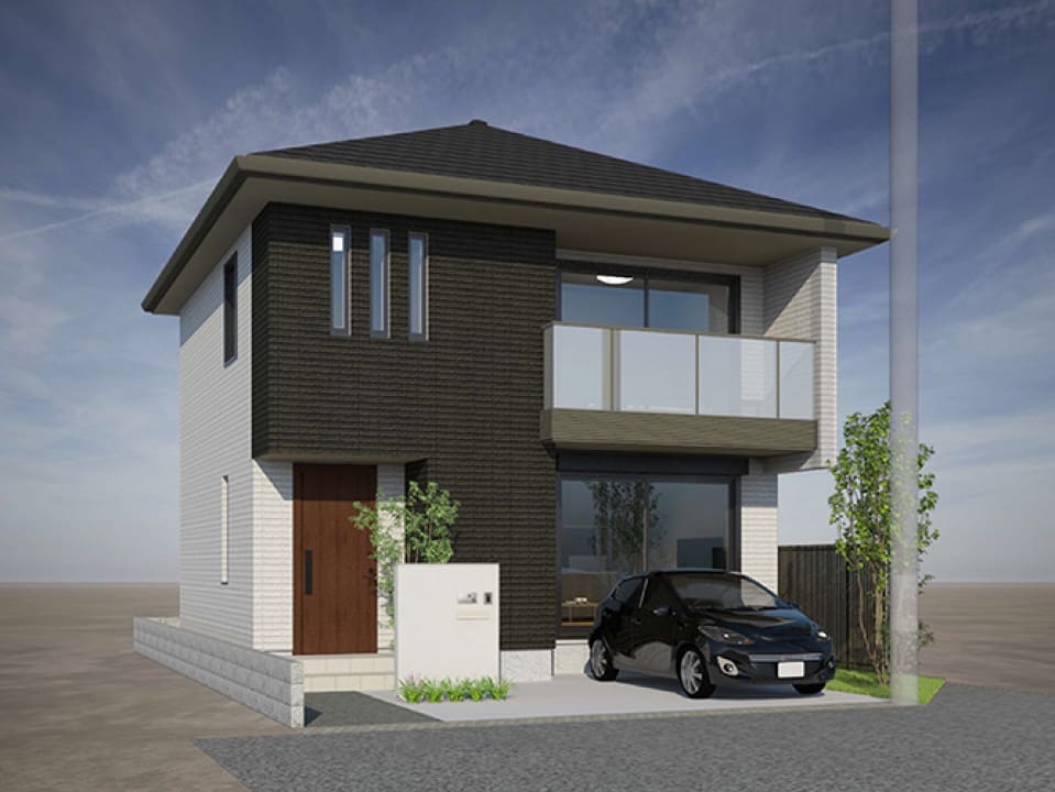 ※参考プランは、当社が紹介するプランの一例です。このプランを義務づけるものではありません。※プラン中の家具・家電・小物・車等は、建物参考価格には含まれておりません。※外観パースは参考プランを基に描き起こしたイメージパースです。※パース・外構図に描かれている樹木は、成長した1~2年後のイメージです。