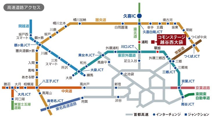 東北道と外環道が利用可能。休日のレジャーの選択肢が広がります。
