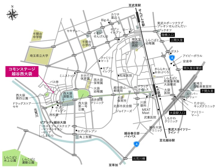 「大袋」駅から日比谷線直通で都心への移動も便利。