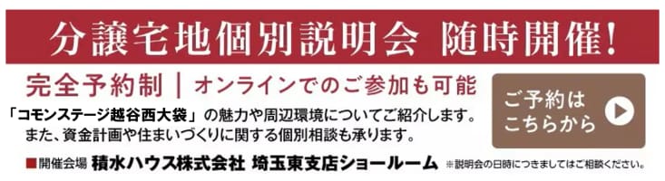 東武スカイツリーライン「大袋」駅まで徒歩25分(約1,965m)。敷地面積約45坪台の分譲地。周辺環境も充実しており、子育てファミリーにうれしい住環境の積水ハウスの分譲地です。