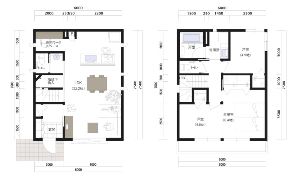 ※このプランの場合、外構工事費用、屋外給排水費用、地盤改良費用などで、約1500万円が別途必要です。