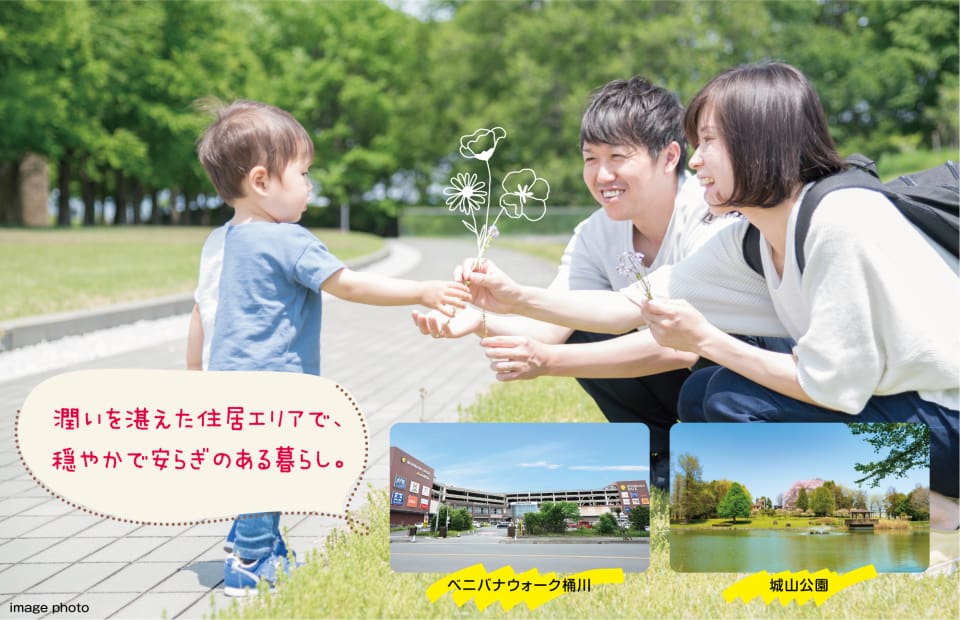 徒歩圏のショッピングモール「ベニバナウォーク桶川」をはじめ、毎日の豊かな暮らしをサポートする施設が身近に揃います。「ベニバナウォーク桶川」にはスーパー「アピタ」やファッションやグルメ、「桶川市市民活動サポートセンター」などがあり、利便性に富んだ日々を過ごせます。
