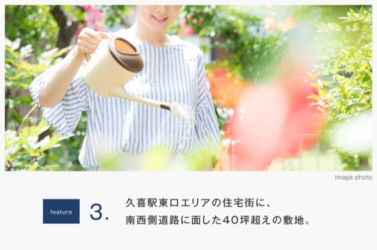 ![]() 駅近の立地に40坪超えの敷地。幹線道路から入った落ち着きのある雰囲気の住宅街です。積水ハウスは、住み続けるほどに「愛着」が増していく「長く住み続けたい家」をお届けします。 |