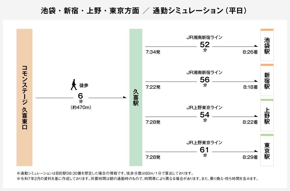 JR湘南新宿ラインとJR上野東京ライン直通で、山手線の東西へ快適にアクセス。東武伊勢崎線の利用で北千住・浅草方面にもスムーズです。