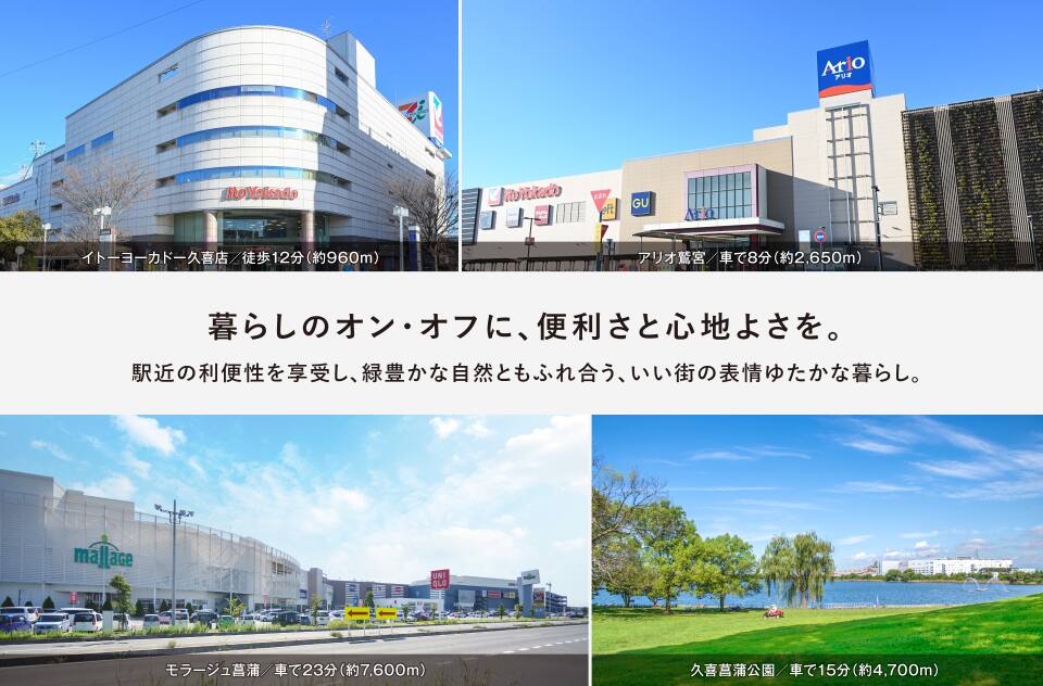 JR宇都宮線・東武伊勢崎線「久喜」駅へ徒歩6分、駅近の便利さを享受するまちの快適な暮らし。
