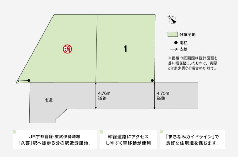 「久喜」駅周辺には多彩な商業施設や医療施設が集まり、日常生活に便利なエリアです。現地は通りから入った位置にあるので、車の通り抜けも少なく落ち着いた雰囲気の住宅街です。