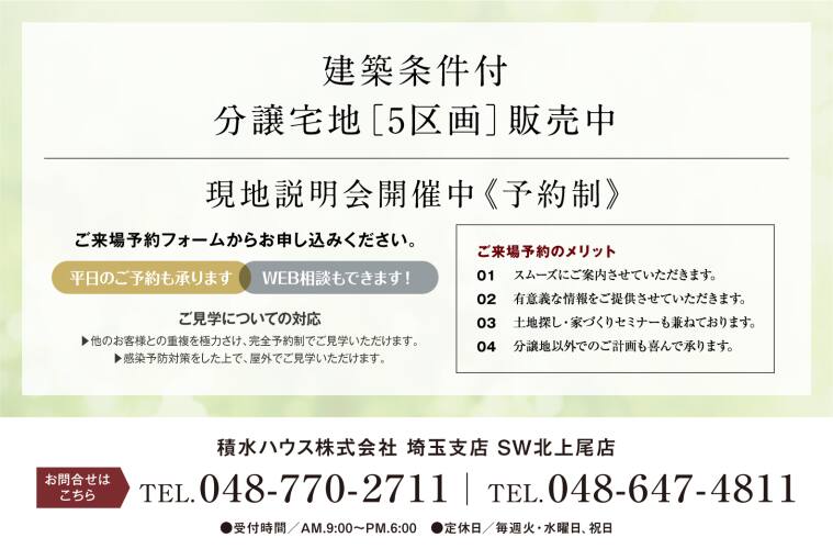 ★現地見学会開催中!ご予約制★ 時間:10時~18時(平日・土日祝どちらも可能です。)