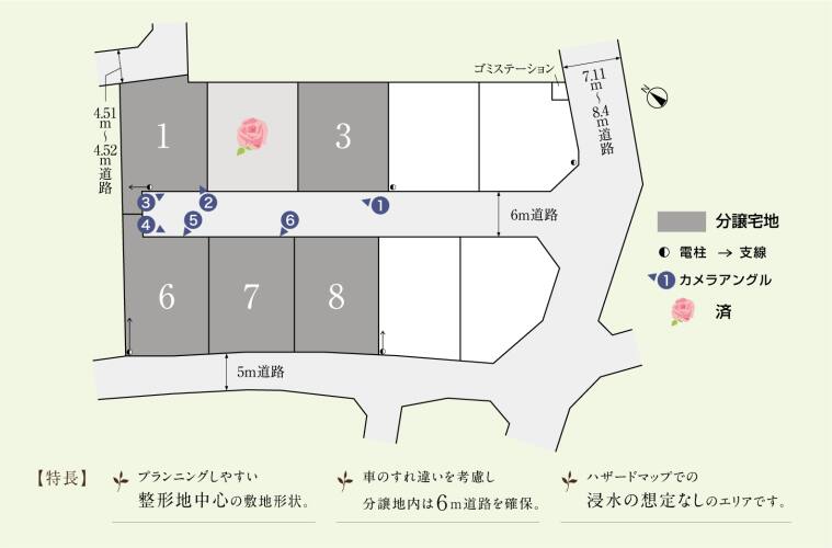 ![]() 全区画51坪超えのゆとりの敷地で、プランニングしやすい整形地をご用意。「永く住み継がれる街」「環境にやさしい街」「豊かなコミュニティが育まれる街」の3つが積水ハウスの街づくりのコンセプト。積水ハウス仕様の上質な街づくりをすすめます。 |
