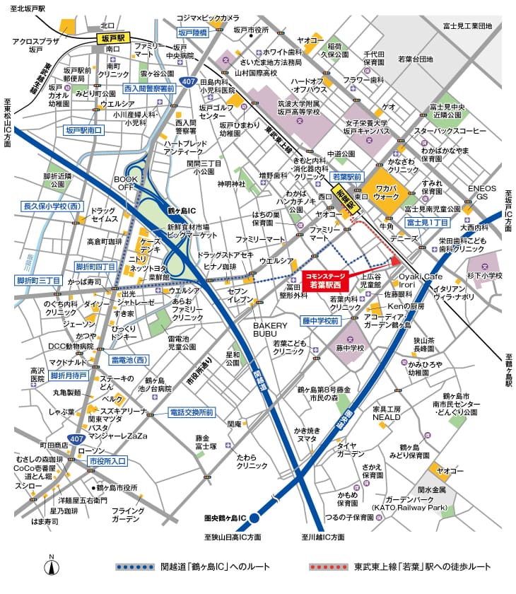 交通アクセスに恵まれた駅近生活と、関越道「鶴ヶ島IC」も利用しやすい快適なカーライフを楽しめる立地。