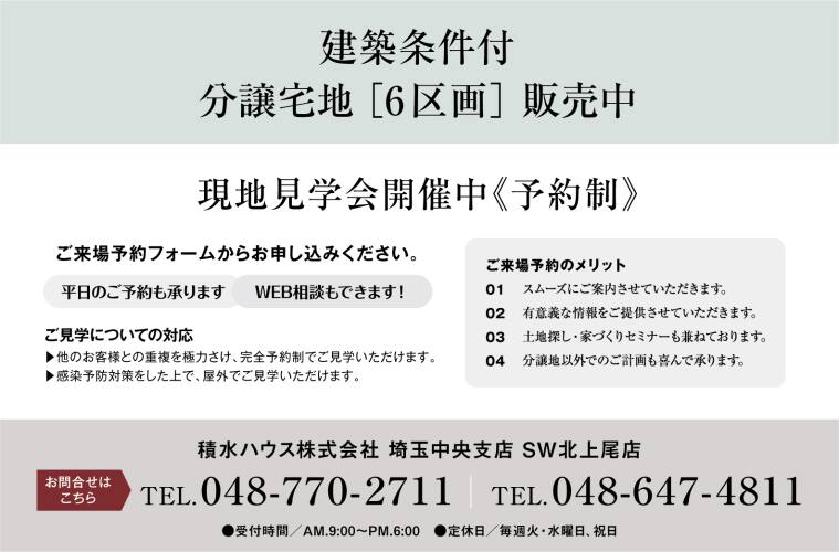 積水ハウス株式会社 埼玉中央支店定休日:火曜日、水曜日及び祝日 営業時間:9:00~18:00