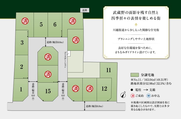 プランニングしやすい土地形状。分譲地内道路は6mで車の出入りもスムーズです。