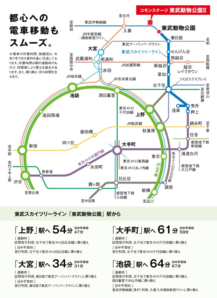 急行停車駅「東武動物公園」駅から都心の主要駅へ、軽快なアクセスで通勤・通学をサポートします。
