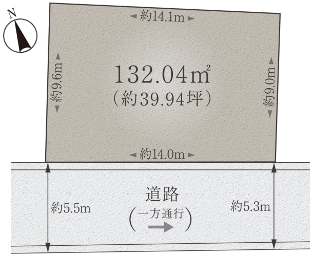 約39.94坪。間口は約14.0mあり、駐車スペースを設けることができます。