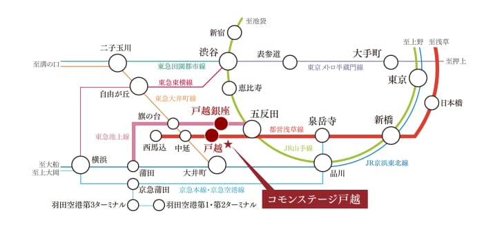 「戸越」駅から「渋谷」駅へ乗車18分。週末のお出かけもスムーズです。