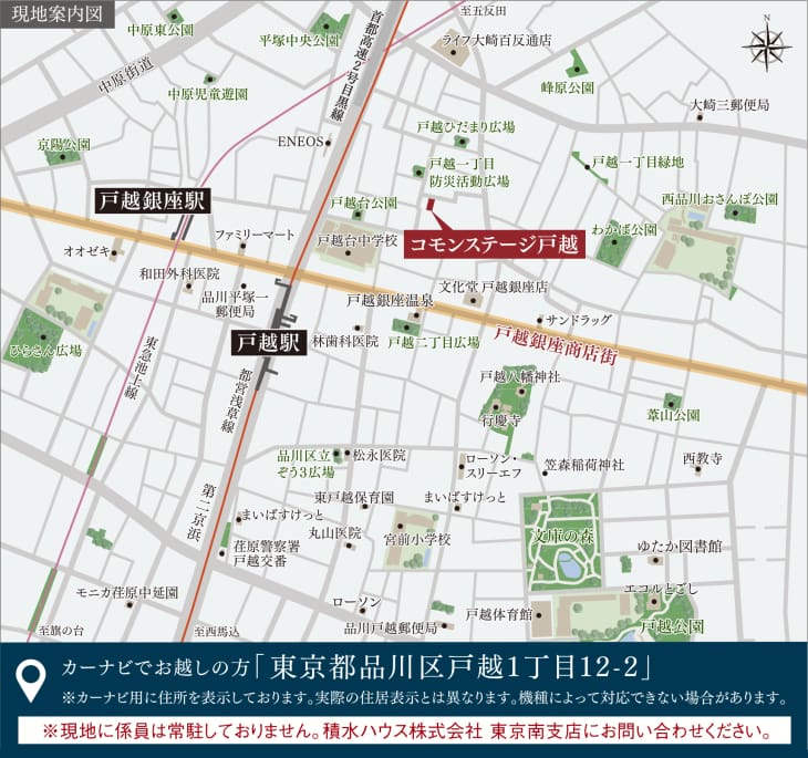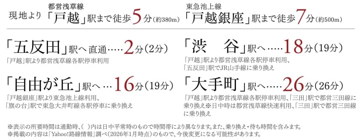 都営浅草線「戸越」駅へ徒歩5分。通勤・通学に便利で、日々の暮らしにゆとりをもたらします。