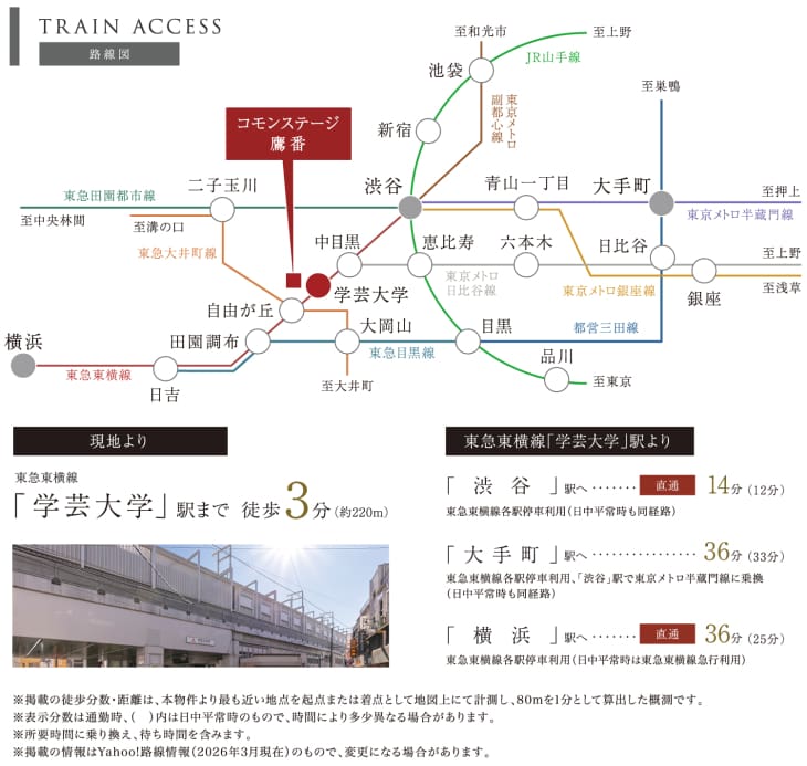 急行停車駅「学芸大学」駅から「渋谷」駅へ直通14分。
