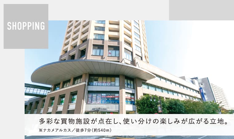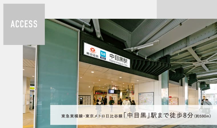 「中目黒」駅へ徒歩8分、教育・買物・医療施設がバランスよく整う立地。利便を纏い日常にゆとりが生まれるまちに、ご家族の理想の住まいを叶えませんか。