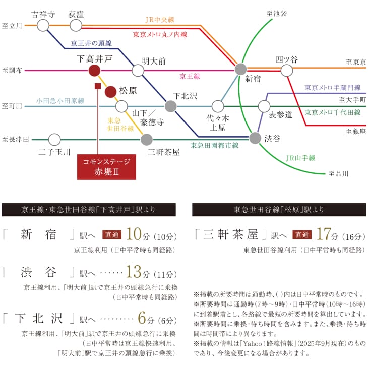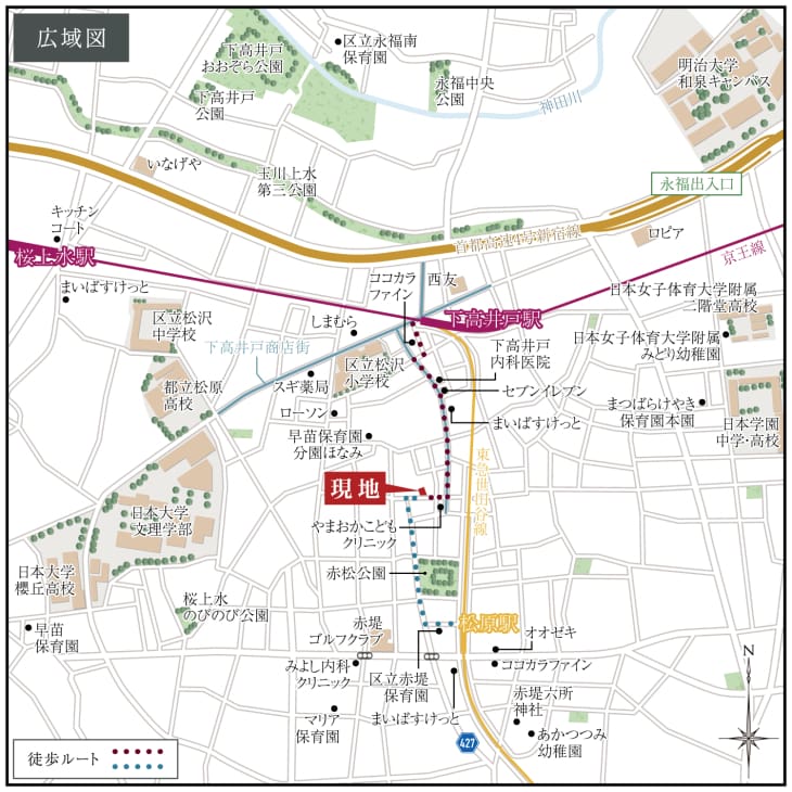 「下高井戸」駅から「新宿」駅へ直通10分、都心への通勤やお出かけがスムーズです。