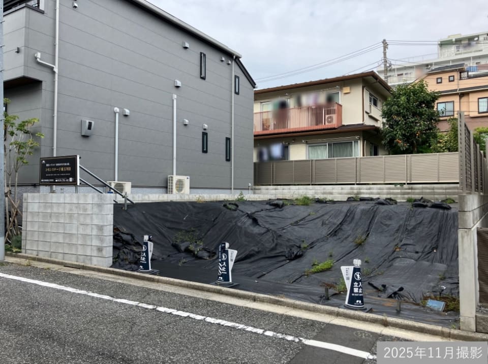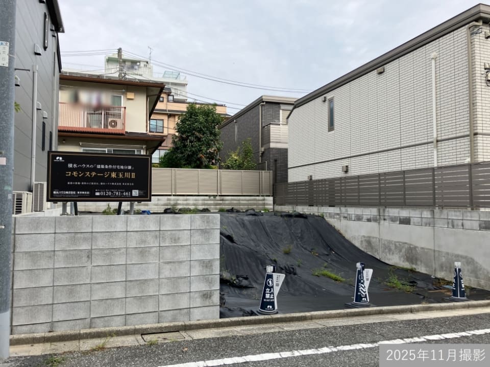 30坪超の敷地を販売中です。周辺は第一種低層住居専用地域に位置している、穏やかな住宅街。ゆったりとした街並みが広がっています。/2025年11月撮影 ※販売済区画を含む